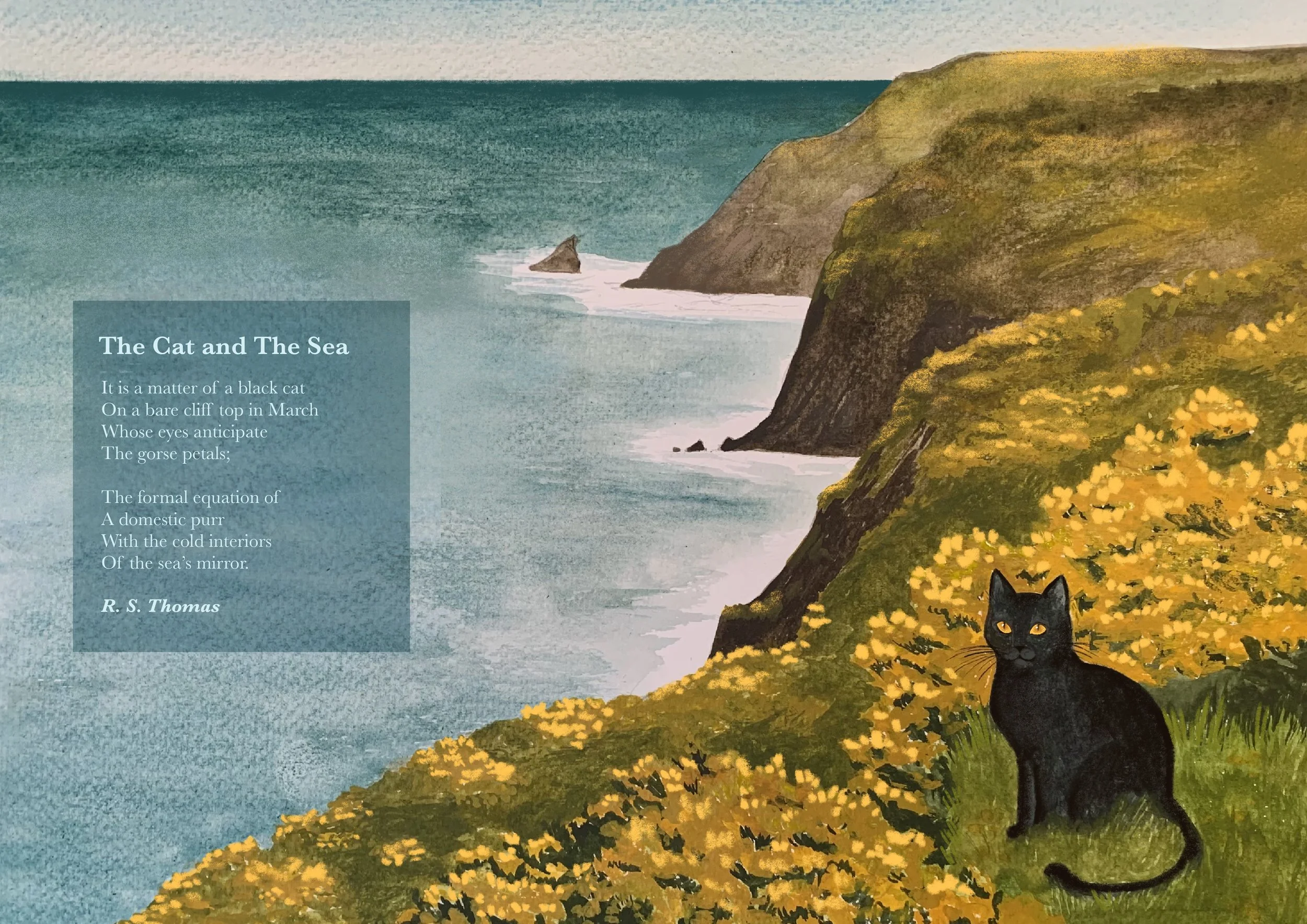 An Illustration inspired by the poem ‘The Cat and the Sea’ by R. S. Thomas.