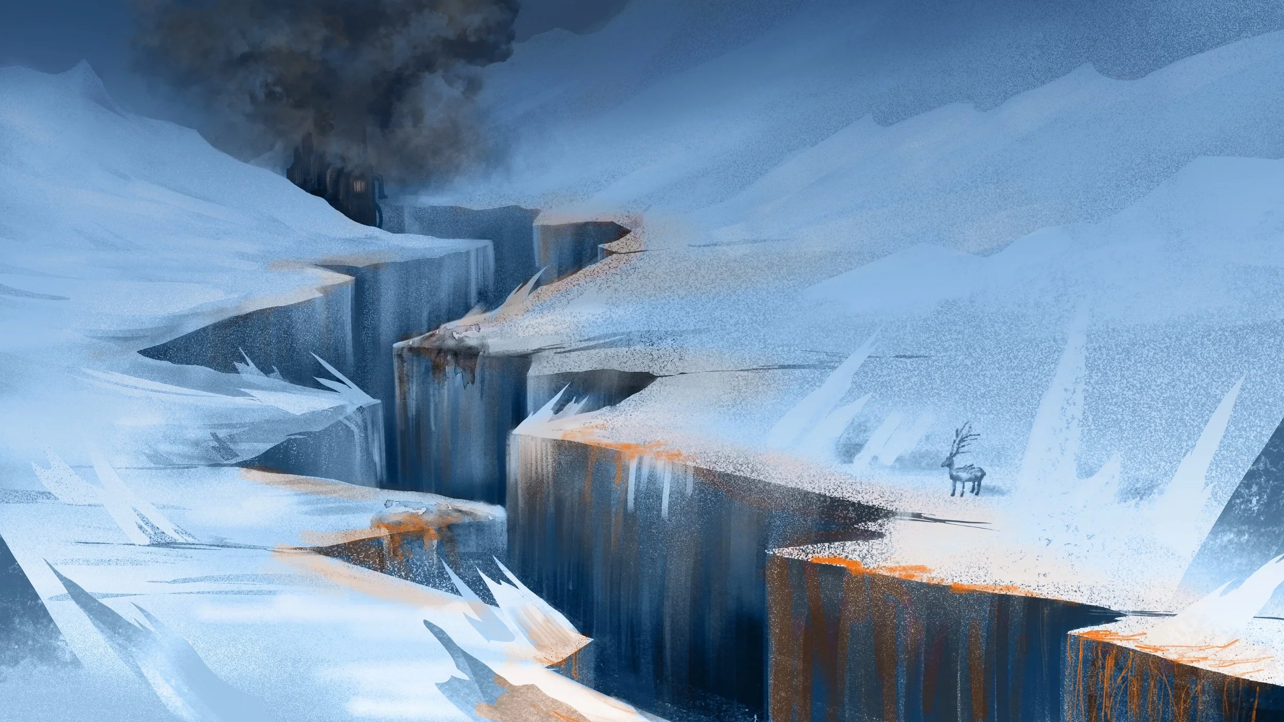 A self-initiated worldbuilding project, exploring creature and environment designs for the world of Glacea - a fantasy ice landscape facing environmental devastation from an unknown threat, the Blight. These are my final keyframe illustrations and some early concepts I explored.
